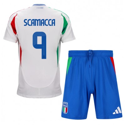 Italien Gianluca Scamacca #9 Replika babykläder Bortaställ Barn EM 2024 Kortärmad (+ korta byxor)